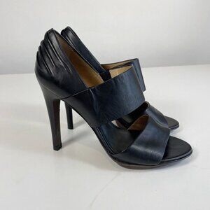 All Saints Spitalfields Womens Leather Heels Sandals Black 37 Open Toe Ruched