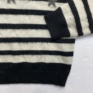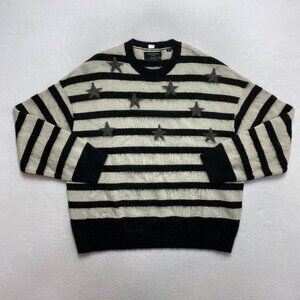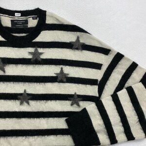 All Saints Stars Sweater Mens XL Black Cream Oversized Crewneck Wool Pullover