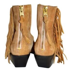 All Saints Suede Fringe Ankle Boots Pointed Toe Tan Western Cowgirl Booties 8