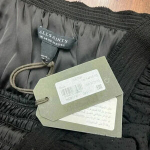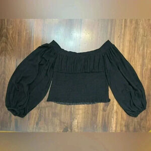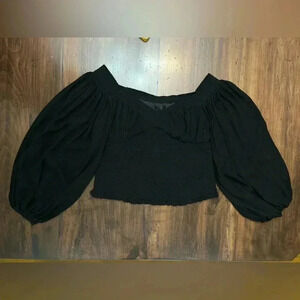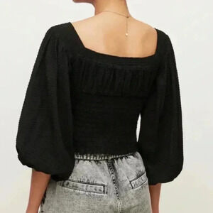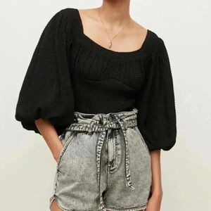 All Saints Sz 10 Tia Top Shirt Black Textured Lightweight Puff Sleeve Boho Chic