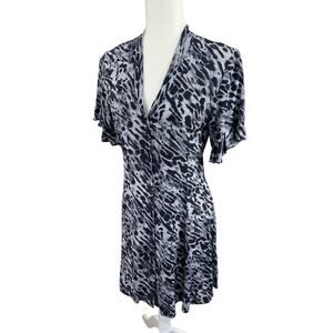 All Saints Fay Ambient dress. V-neck, button front, waist tie, ruffled sleeves, mini length. 100% viscose. Size small.