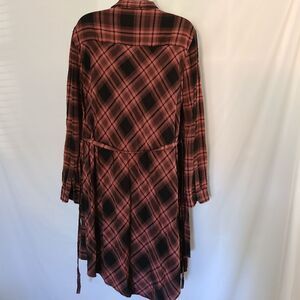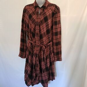 Excellent gently preowned condition beautiful flowy plaid dress with snap front details and belted waist. Wear unbelted for a completely different silhouette. Looks great dressed up or down.