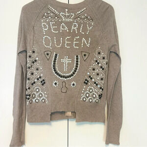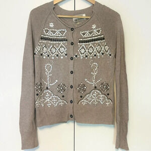 All Saints Taupe Pearly Queen Wool Cotton Cashmere Cardigan Sweater 8 NWT
