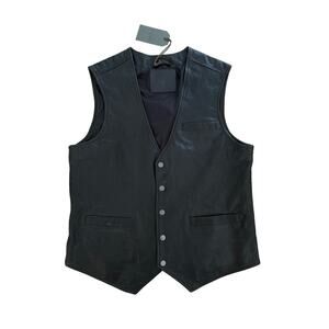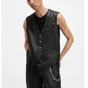 All Saints - Tempo Washed Leather Waistcoat in Black