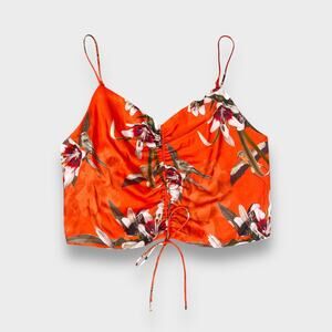 All Saints Alexia Dorada Silk Blend Top Flame Orange Floral Womens 2 Cami V-Neck