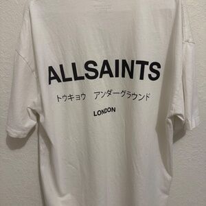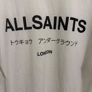 The All Saints Underground London Oversized Faded T Shirt for men in size small is a classic and relaxed fit t-shirt in white color. This short sleeve tee features an oversized design, making it a stylish and versatile addition to any wardrobe. Made by the popular brand All Saints, this t-shirt is perfect for those looking for a timeless and effortless piece to wear. If you’re interested and would like more precise measurements we’d be more than happy to help. We have checked it for quality, steamed it, and disinfected it for your convenience. If you would like any additional pictures message us on Poshmark or on our instagram lemons_and_berries.