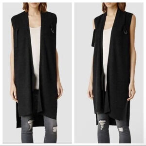 All Saints VIX Double Buckle Sleeveless Merino Wool Sweater Vest. one very small hole in the back, shown in pics. otherwise in great condition!