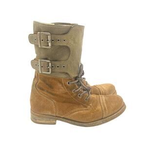 All Saints Womens Demise Brown Leather Lace Up Buckle Military Boots Size US 6