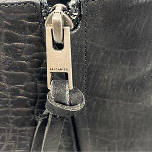 All Saints Womens Jonas Leather Ankle Bootie 41 Black Embossed Nubuck Heeled
