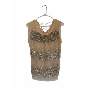 All Saints Women's Medium Beige Round Neck Top Restrain Beaded Hand Embellished