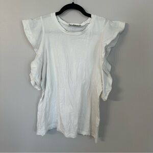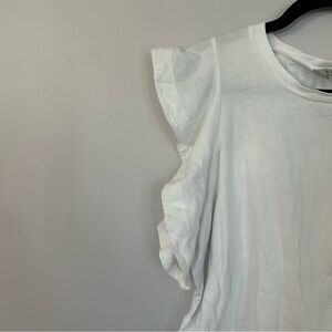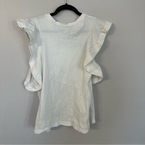 All Saints Women’s White Short Flutter Sleeve Cotton Crewneck Top Size 10 GUC
