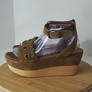 All Saints Yuki Platform Suede Sandal Carmel Brown EU 39 NWOT
