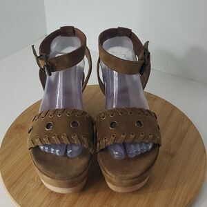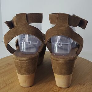 All Saints Yuki Platform Suede Sandal Carmel Brown EU 40 NWOT