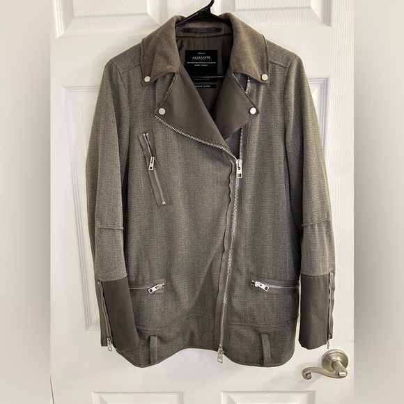All Saints Zulia Biker Jacket/coat in Khaki Green US 6 trendy designer