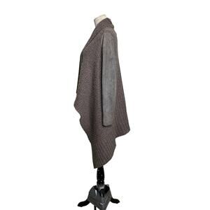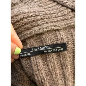 All Saints brown wool blend vegan leather sleeves force asymmetrical cardigan size 4