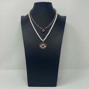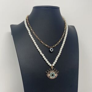 All Seeing Evil Eye Black Crystal Rhinestone Pearl Necklace