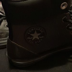 All Star black high ankle tennis shoes with shoestrings Allstar converse sign on the side