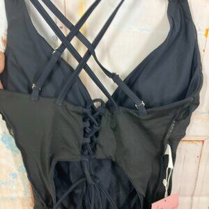 All Sure Women's size M Black Halter Ruched waist One piece swimsuit NWT