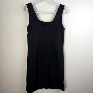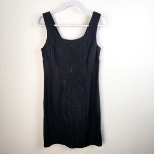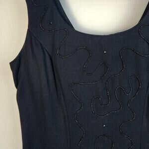 - Description: Black tank sheath dress with ebellishment detail at front; zip closure at back; unlined or without lining