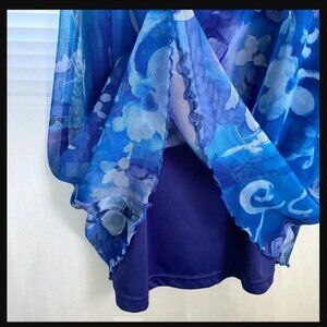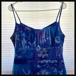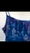 "All That Jazz blue and purple “watercolor” artwork mini spaghetti strap dress.