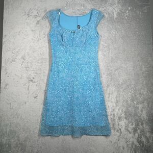 All That Jazz Dress Womens 8 Blue White Paisley Babydoll Boho Fairy Peasant Y2K