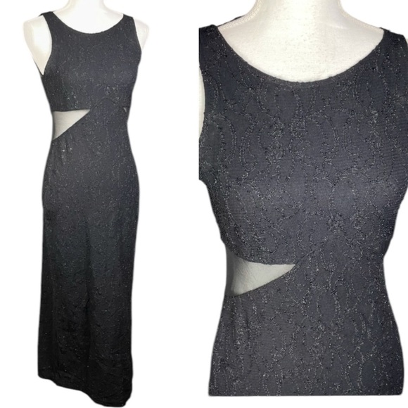 All That Jazz Dress Womens Medium Black Vintage Y2K Whimsigoth Sparkle Mesh Maxi