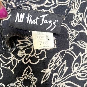 Beautiful authentic vintage “All That Jazz” sleeveless sheath dress in a navy + ivory floral print. Soft, breathable rayon—perfect for warm weather, resort wear, or summer nights.