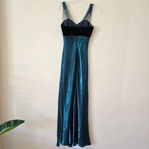 All That Jazz Elegant Black Velvet & Green Maxi Dress Size 3 Y2k Prom Wimsigoth