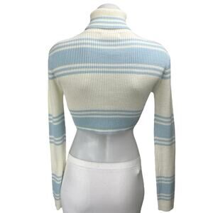 All The Ways Blue Striped Rib Knit Long Sleeve Turtleneck Crop Sweater Top Size XS