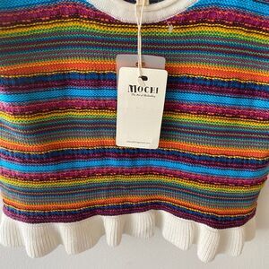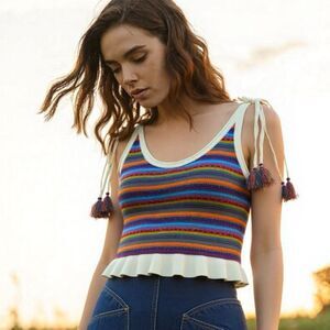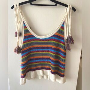 All Things Mochi NWT Knit Strappy Tank Top Rainbow Stripe Tassels Boho Festival