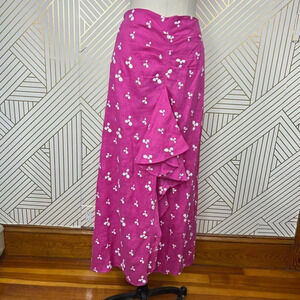 All Things Mochi Ola Maxi Skirt Embroidered Ruffle Floral Pink Size Medium
