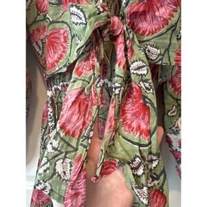 All Things Mochi Red Green Floral Cotton Tie Back Shift Dress Size XL