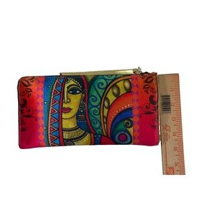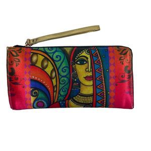 All Things Sundar Colorful Satin and Polyester Large Zip Wristlet Wallet NWOT