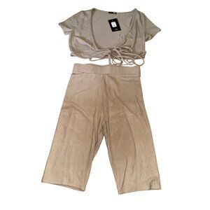 All Tied Up Biker Capri Short Set Mocha Large Fashion Nova Sexy Stretch Wrap Top