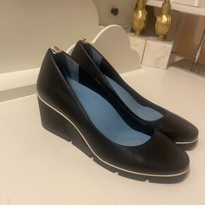 All Weather Wedges in Onyx Black Leather Closed Toe Comfort Size