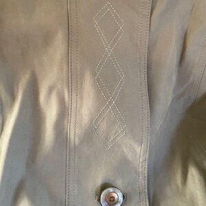 Light weight and water-resistant jacket. Detail stitching on pockets and front. Very soft and comfortable. No damage or stains. Size medium. From smoke free home.