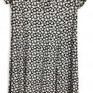 Vintage 80s All Week Long Women's Maxi Dress - Smocked Design, Black & White Floral, Cottagecore Chic with a Coquettecore aesthetic.