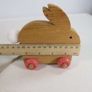 All Wood Bunny Rabbit Pull Toy with wood wheels (fabric tale) 4 1/2" tall