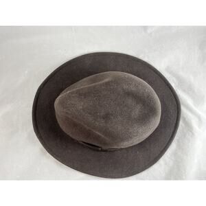 Offering this all-wool brown fedora tagged a size large. We measured the interior circumference and it measures 22 1/2". It is clean, free of holes, tears, and odors. There's a couple small light marks on the underside of the brim, as shown. See photos.
