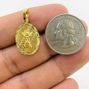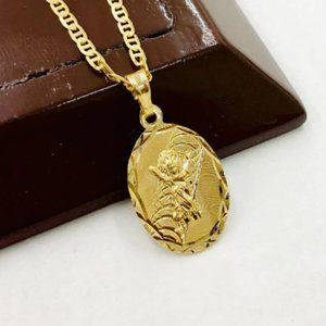 All Yellow Baby Jesus Medal Mariner link Chain 18" for Girls Boys Ladies 22x14mm