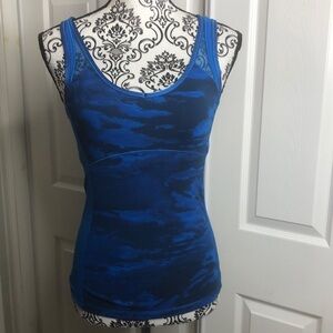 All Yoga Tank Dark Blue Marble Tank Top XS Built In Bra