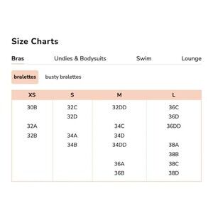 Recommended Sizing: XS (30A-B, 32A-B), S (32C-D, 34A-B), M (32DD, 34C-DD, 36A-B), L (36C-DD, 38A-D)