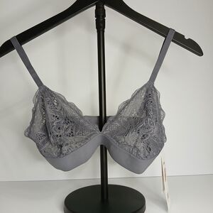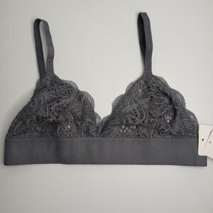 All You LIVELY Women's Lace Bra No Wire Bralette Smoke Gray Size L New