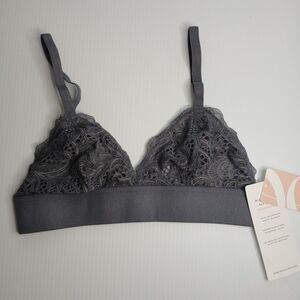 All You LIVELY Women's Lace Bra No Wire Bralette Smoke Gray Size M New