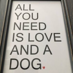 ‘ All You Need Is Love And A Dog❤️’ Distressed Gray Framed Art. 8.5” X 10.5”