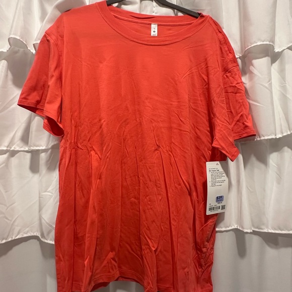 This is a basic tee by lululemon. Wear it to work out or wear it with your favorite jeans. Very soft and super comfy. Relaxed fit. hip length. Brand new with tags.