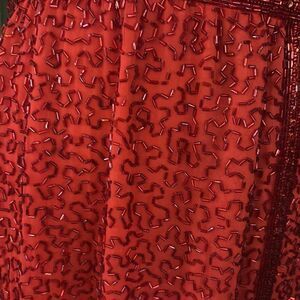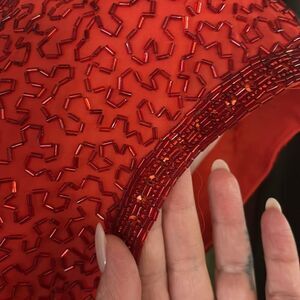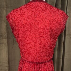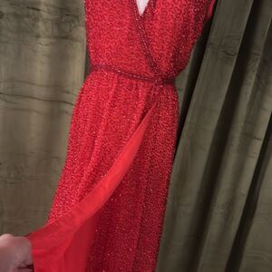All beaded Elegant Red Wrap Dress, XS-S