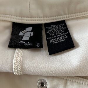 All by Jodie Skort , size 8 Rip Skirt, cream color, good condition, small ink mark on inside of waist, see pictures, 2 snap pockets in back and 2 zipper pockets in front