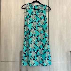 All for Color | Sea Turtle Print Shift Dress | Turquoise | Size Small
