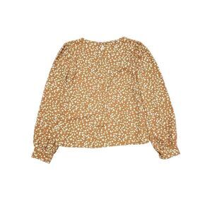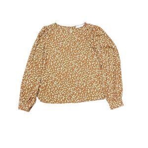 All in Favor Blouse Yellow and Cream Floral Long Sleeve Women's Medium